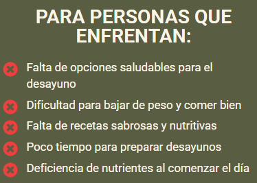 Cada receta fue pensada para ofrecer todos los nutrientes que tu cuerpo necesita al comenzar el día, con un enfoque en el sabor y la practicidad.